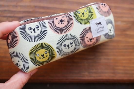 おとぼけ顔のライオンが何ともキュートなテキスタイルです。